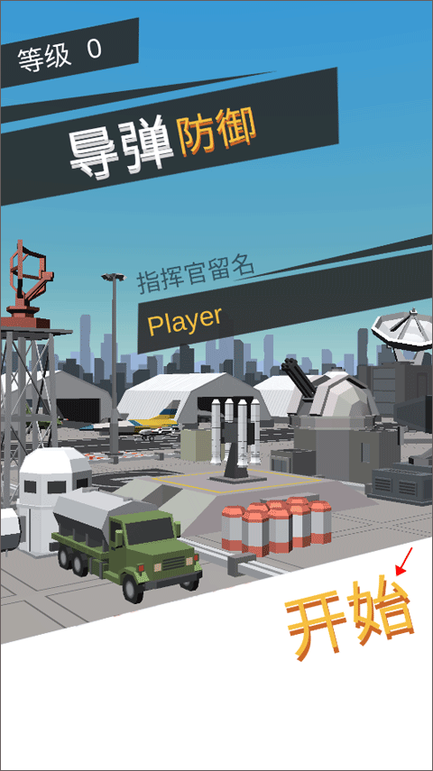 1、打开游戏,会看到玩家目前的等级为0,点击“开始”按钮。