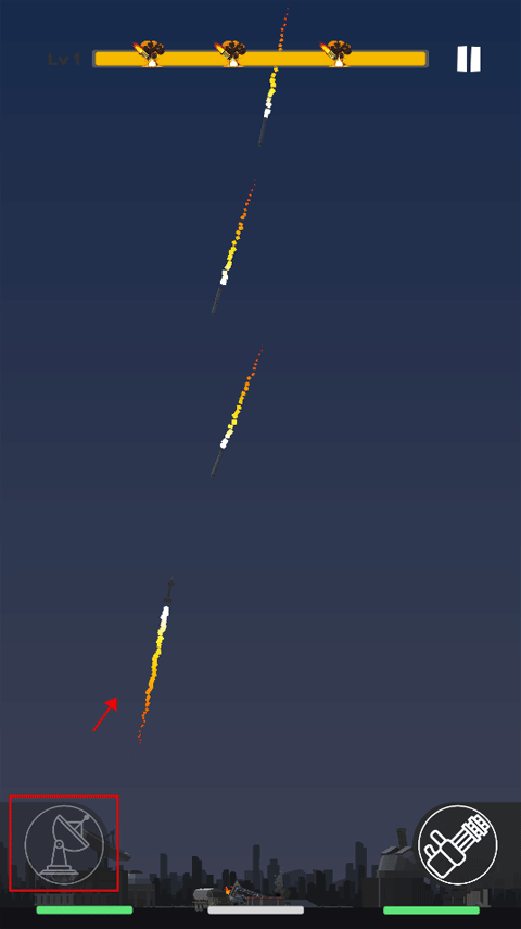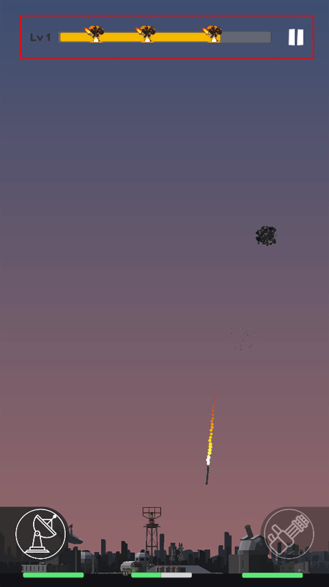 6、玩家需要承受三波导弹的攻击之后,才能获得胜利,就是等上方的橙色进度条满了之后就能通关了。