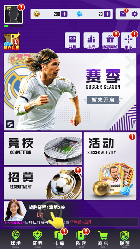 2、利用游戏当中的各种资源,来不断的提升自己球员的实力,来完成游戏当中的闯关;