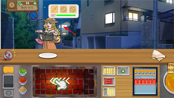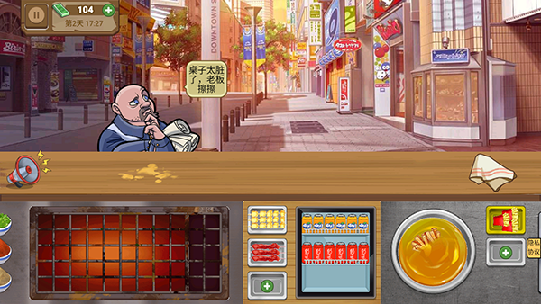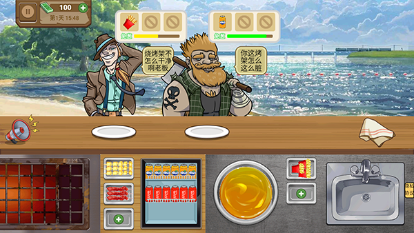 2、首先来了一位客人,玩家需要根据客人的需求为他制作食物,炸薯条、烧烤、饮料等;
