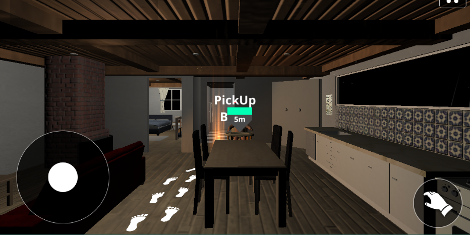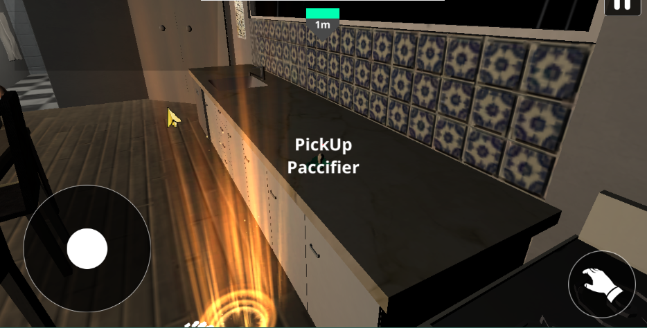 4、游戏操控,左侧是控制位置移动,右侧则是抓起,右上角可以暂停,现在走向你前方的baby抱起他