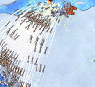 ④:常用防守阵型,步兵+弓兵+重弩三条线,在敌人没有发动技能之前已经死伤大半