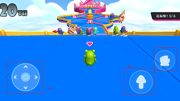 4、游戏开始,左边是移动键,右边分别是跳跃键和攻击键;
