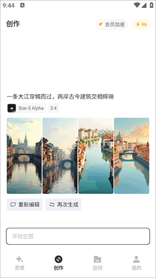 1、首先用户按照以上的免费使用方式,领取星流ai官方赠送的点数,然后进入app的创作界面中,直接点击输入框