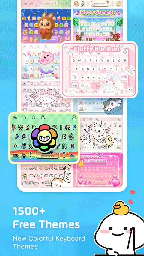 - 1500+ 免费时尚主题,如日本动漫、霓虹灯键盘、LED 键盘、RGB 键盘、K-Pop 偶像、可爱动物、珍珠奶茶、牛油果、钢铁侠、独角兽、动画主题……每周都会添加新主题!