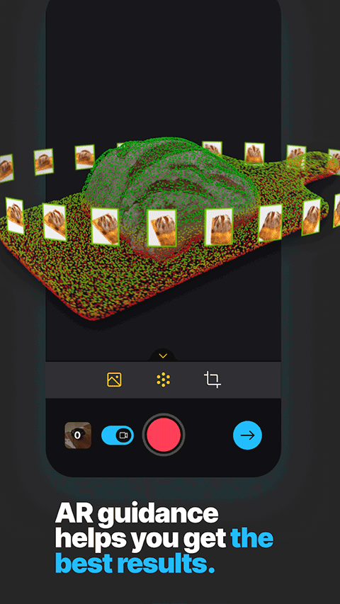2、App 会通过实时 AR 反馈(如绿色标记)指导你补足拍摄角度,确保照片对齐良好。