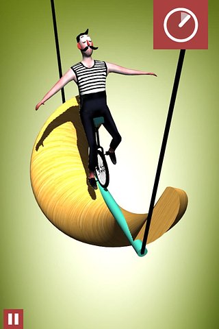 独轮车游戏尽管只有短短25关,但每一关都有一个令人感觉相当棘手的骑行道,比如一根绳索,一个旋转台,摇摇晃晃的桥,或是环形跑道。游戏设定胡子大叔骑着独轮车一直前进,玩家触碰屏幕时,他就向后蹬车,所以需要你通过不断地调整大叔的骑行方向来顺利穿越或躲避险道。平衡一个独轮车在钢索Bamba就是骗子。简约的游戏,主要在于来回,Bamba特性难以置信的25水平越来越困难。