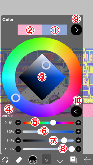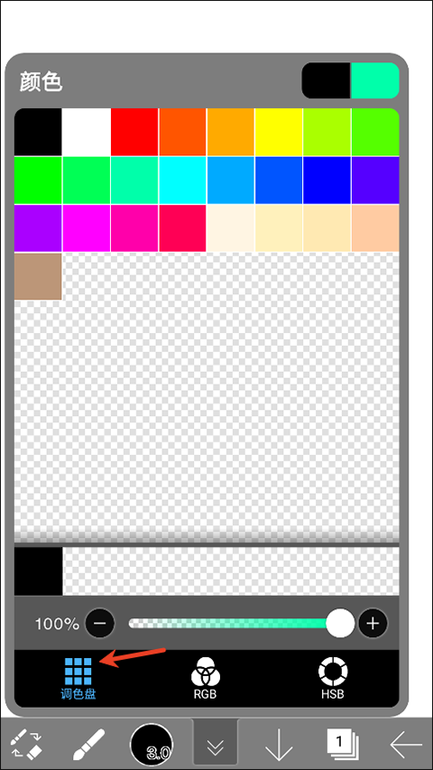 4、最后调色板屏幕是用于保存和选择常用的颜色