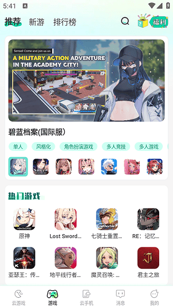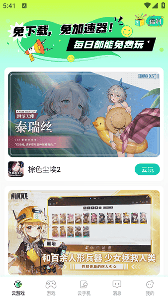 2、切换至云游戏界面,众多热门云游戏映入眼帘,能快速找到当下流行的游戏开启畅玩之旅。