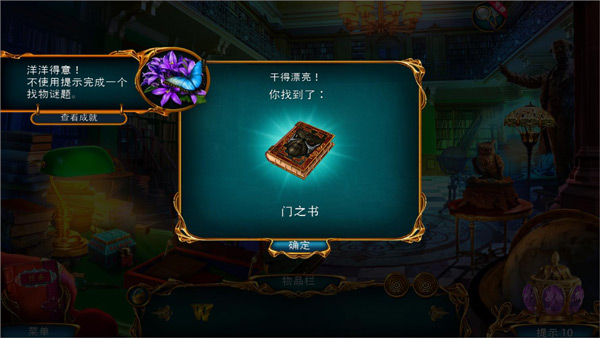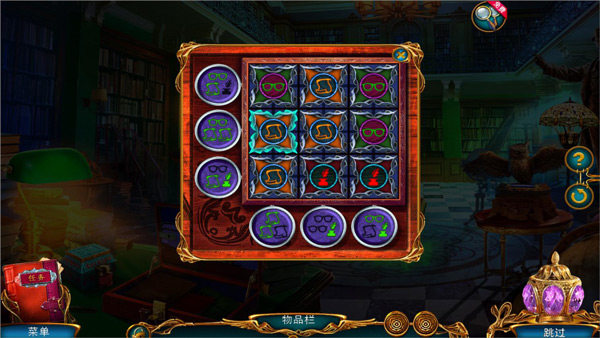 7、还可以收集后面书架上面的地球仪,还有右边柜子下弥漫的锁链,还有左边下面的钟摆放上左边架子上的钟。