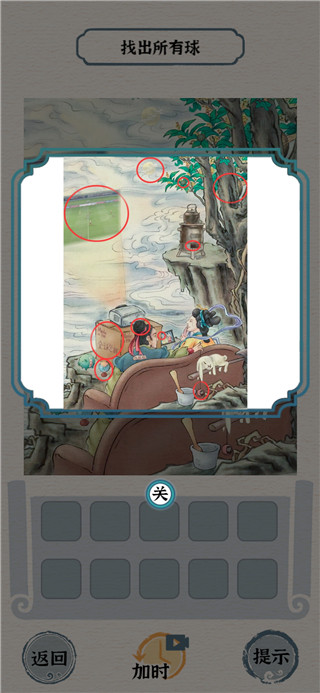 6、第六关,找出十个球。提示,神仙也用投影仪看球赛。