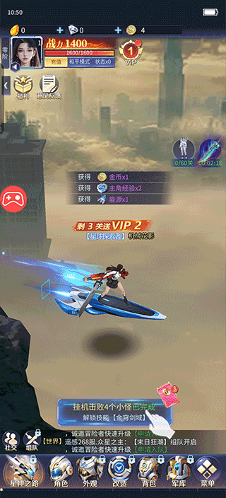 游戏提供PVE(玩家对环境)和PVP(玩家对玩家)等多种玩法,包括主线剧情战、BOSS战、竞技场排名赛、跨服星域争霸等,满足不同玩家的需求。