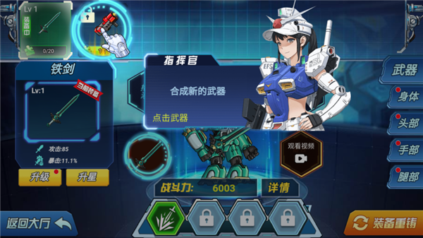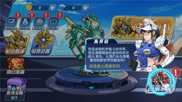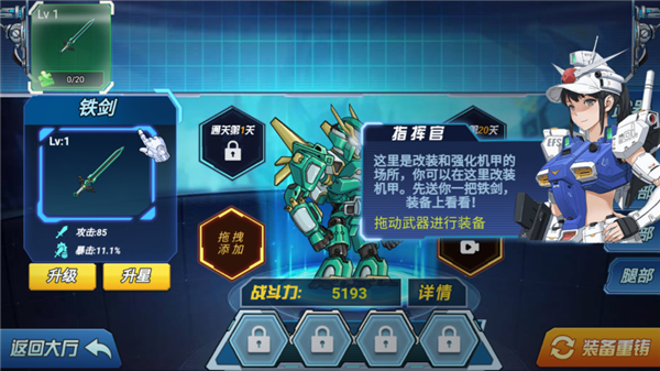 2、这里是改装和强化机甲的场所,你可以在这里改装机甲,拖动武器进行装备。