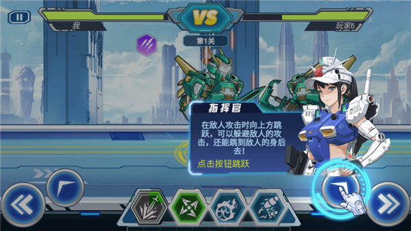 8、点击“跳跃”按钮,可以在敌人攻击的时候向上方跳跃,可以躲避敌人的攻击,并且还能跳到敌人的身后。