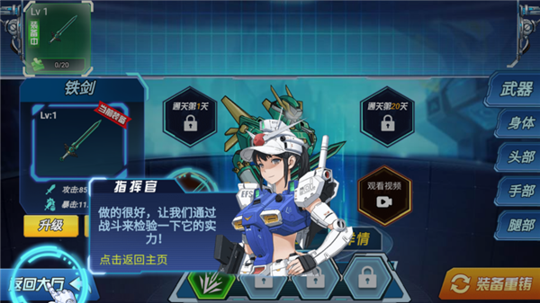 3、做的很好,改装好的话可以通过战斗来检验一下它的实力,点击返回主页。