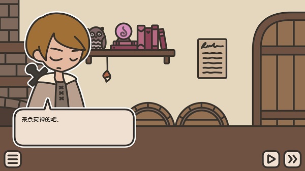 1、进入游戏,一个冒险家打扮的人走进来,通过点击屏幕继续接下来的对话。