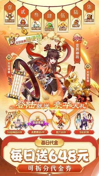 仙灵物语1折折扣平台即为仙灵物语免费版一折,游戏内容和官方正版是一样的,此为授权的bt变态版,每天上线都可以领取648代金券,平民玩家可以购买很多资源;新手第一次登录还能享受一百连抽,连续登录,每天都有豪礼,奖励一天比一天好。