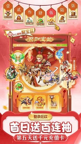 【登录狂欢】首日送百连抽,第五天送千元充值卡。