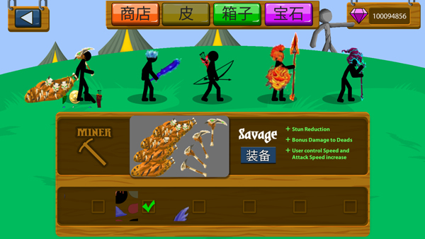 2、玩家可使用免费的大量钻石购买解锁火柴人士兵的皮肤;