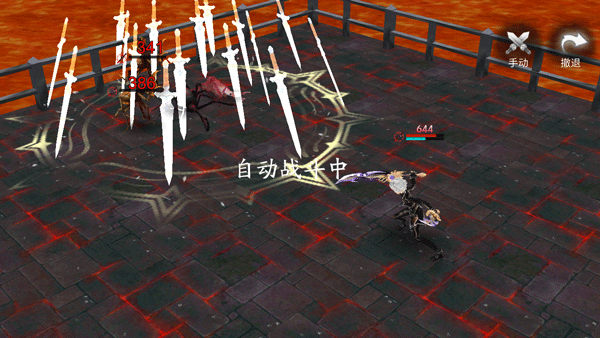 2、左边的转盘控制角色的行动,右边的攻击键可以攻击敌人,还可以开启自动战斗