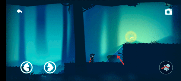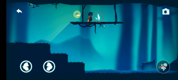 3、当艾瑞尔碰到非常高的台阶,而跳跃按钮无法过去时,根据新手引导点击屏幕,让蝴蝶停留在你点击的位置,这时候就会显示一条可以向上走的路,后面如果遇到非常高的台阶,同样也是这样的操作。