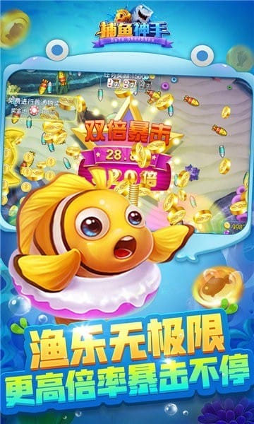 捕鱼神手3d官方正版是一款深受玩家喜爱的休闲捕鱼手游,以深海捕鱼为题材,融合了街机经典玩法与现代特效。游戏画面绚丽,鱼类种类丰富,从小型鱼到巨型BOSS应有尽有,每种鱼都设有不同的分值和捕获难度。核心玩法是通过操作炮台发射子弹,击中鱼类即可获得金币,而“高爆版”则强化了武器的威力和爆率,让玩家更容易触发全屏炸弹、激光连射等华丽技能,瞬间清屏,收获海量奖励。