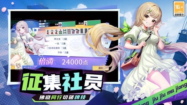 玖玖麻将最新版本是一款热血二次元风格的麻将手游。玩法多样,有经典立直、热血国标、三麻、四麻等模式,还可体验闪电对局。设有紧张刺激的段位战,能与各地雀士争夺至尊凤凰位。玩家可征集超萌社员,养成解锁专属语音、特效和表情。支持一键邀请好友在友人房对战。游戏画面精美,特效炫目,为玩家带来沉浸式麻将体验。
