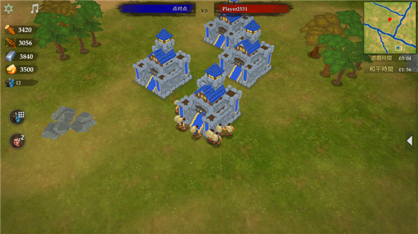 在这里你可以选择一个或多个工人来重新建造各种建筑,发展各项事业,比如农场、金矿等。游戏建造采用沙盒式玩法,因此在这片广袤的田地中,你可以选择任一地方建造,不断的发展壮大,训练士兵,想着胜利前进。