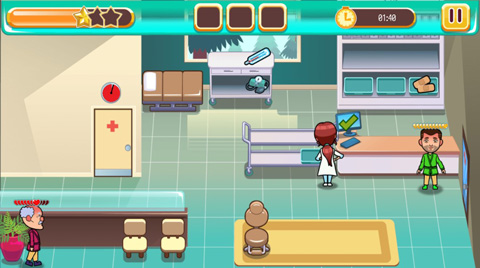 1、玩家们在刚开始的时候要注意坐在椅子上的那些病人,根据他们头顶的提示来点击他们到不同的位置,大多数情况下都是要做到椅子上,并且需要医生来查看一下情况的。