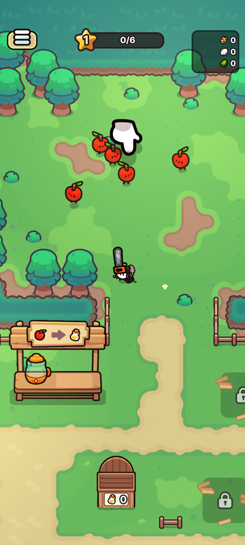 2、汁水四溅特效:电锯切割与水果爆破的超炫视听体验!尽管角色使用电锯收割,但萌系画风适合全年龄玩家。缤纷色彩与可爱角色会让你忽略经营的压力。
