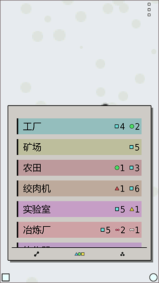 游戏的教程部分特别详细,介绍了各种建筑的功能和材料生产流程。比如中枢是用来建造其他设施的起点,工厂可以生产绿球,矿场靠近蓝矿脉就能产出蓝方块,农场则负责生产红三角(也就是肉)。还有肉加工厂能把红三角和蓝方块变成橙方块,实验室能合成特殊材料,房子需要消耗特定材料来造黑色单位。这些设定让游戏既有策略性又充满趣味。