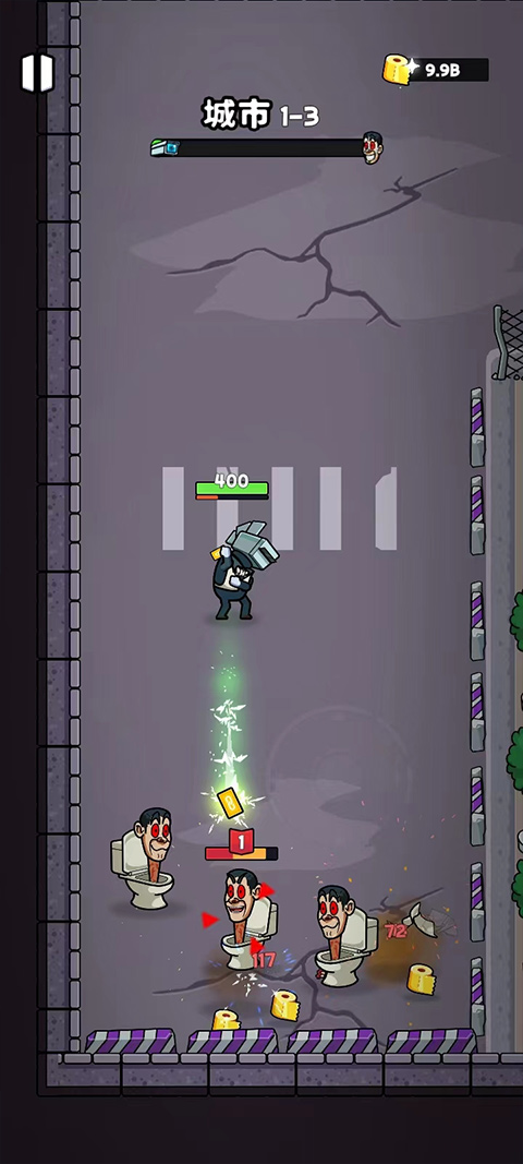 4、随着动感的dj音乐开始攻击厕所怪物把,在游戏过程中记得要获取金色厕纸。