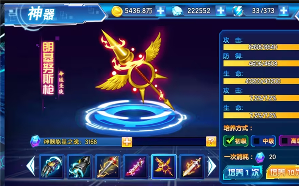 14、神器,也是战力上升的一个很重要的途径,相信很多老玩家都满了,为什么大家刚拿到一张新卡也有战力差,就是这些基础的养成差距,点神器注意用金币刷就行,不要用钻石。