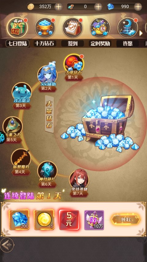 4、累积登录就送vip经验和海量钻石
