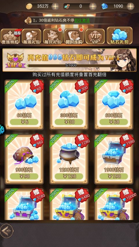 6、充值全部0.1折送钻石