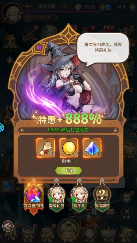 5、首次签到触发特惠礼包