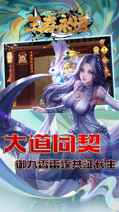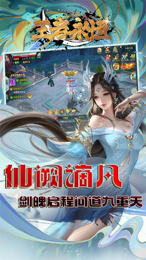 王者永恒是一款全新的国风仙侠手游,采用了最为顶尖的3D物理引擎打造,拥有超高画质的游戏画面和特效,人物造型炫酷,更有可爱的宠物坐骑,让你体验御风而行的畅快感觉。 游戏还提供了丰富多样的职业选择,每一位角色都拥有独特的技能特效,绚丽的光影交织,为你呈现一场极致的视觉盛宴。 此外,游戏还加入了挂机放置和自动寻路功能,让你在轻松享受游戏的同时,也能欣赏到炫酷的战斗画面,体验更加流畅、舒适的仙侠之旅。