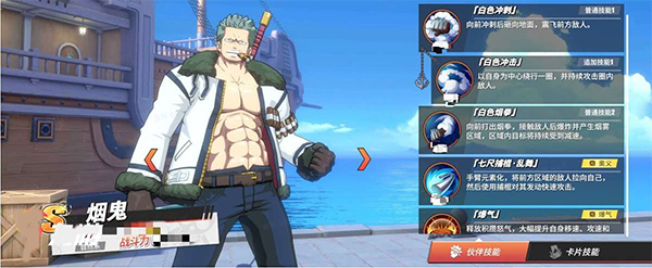 技系伙伴:艾尼路(助战鳄鱼)、导航员·奈美(助战佐罗)
