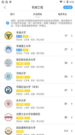 如机械专业的机械工程,可以看到所有开设该专业的院校;