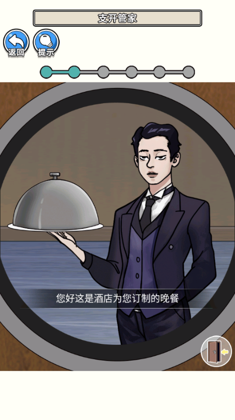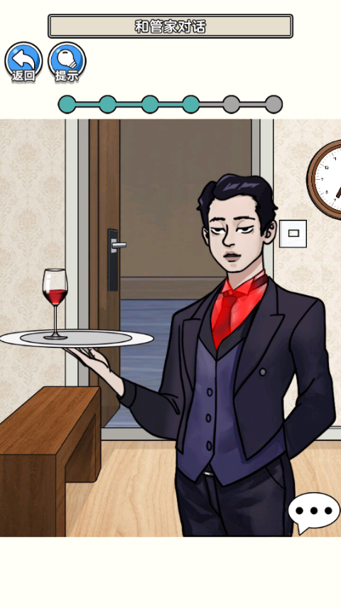 8、管家又来敲门了,他送来了,你先点击红酒瓶,把红酒洒到他的身上,然后点击酒杯喝下红酒。