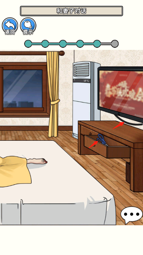 10、点击打开抽屉,把剪刀拖到电视线那里,剪断。
