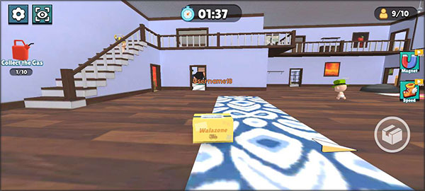 游戏中有各种道具可以使用,关卡设计也挺多样的,每次都玩有不同的地图和挑战。操作方面,左下角的轮盘控制移动,右下角变身物品,滑动屏幕调整视角,简单易学。新手也能很快上手,享受游戏乐趣。