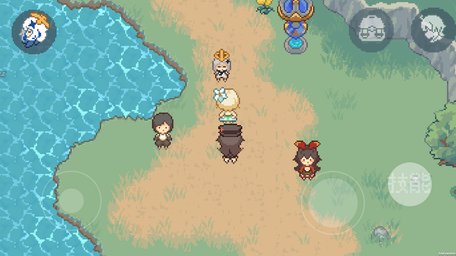 《像素原神》是一款由B站UP主hola哈呐制作的像素风角色扮演手游,玩法类似原神但降低了配置需求,简单方便且体积小。游戏中玩家可以操控角色进行冒险,面对多种多样的怪物和机关,利用技能挑战超级Boss,体验挂机升级的乐趣。游戏画风Q萌可爱,剧情丰富,每个角色都有独特的分支剧情,带给你不同的游戏体验。