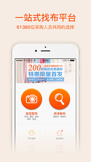 跑布料市场买布太煎熬?为此小编给大家推荐这款百布app,告别传统找布方法,用手机找布。这款软件为广大采购提供了一种轻松可控的手机端找布买布方案,打开软件使用拍照找布,立即呈现想要的布料图片,文字,价格等多维度参数方式,在手机端就可以完全实现支付、质检、物流到厂7店等买布全程,并有客服持续跟进一路轻松收货。让您确定这就是想找的布料!说再多还不如先试试,所以快来下载吧!