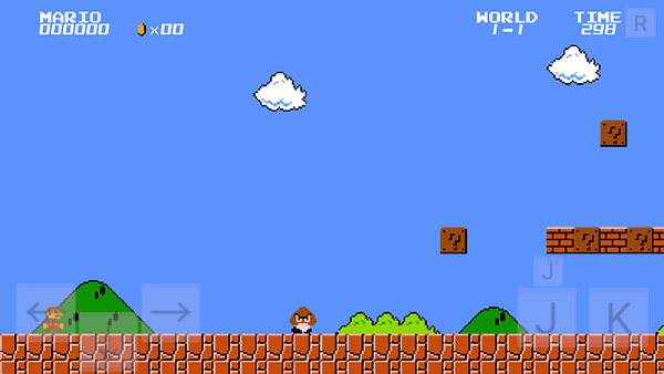 马里奥可以在地面上奔跑,并在某些情况下进行冲刺,以更快地移动或达到更高的跳跃高度。
