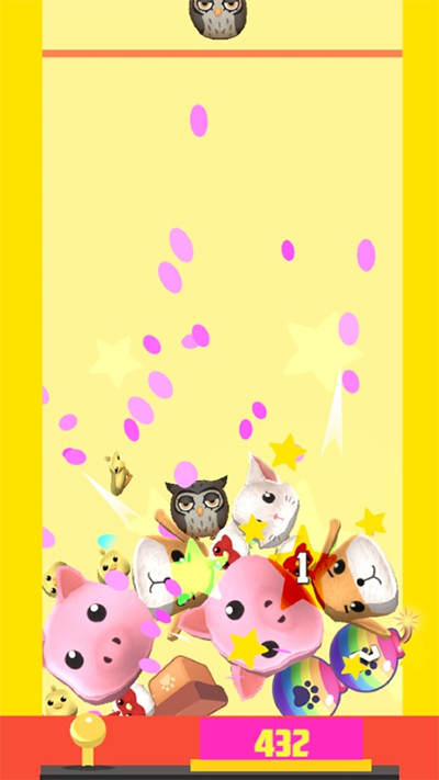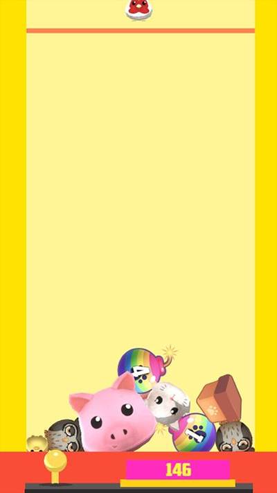 ●游戏中玩家需要移动不断下落的小动物,使其与相同的动物合成体积更大的动物,直到堆积的动物越过屏幕上方的红线,游戏方可结束。