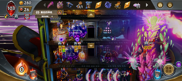 游戏包含25个契约关卡,玩家可选择不同难度(如“天神帮助”提供额外资源但增加Boss血量)。高难度下,阈值系统(火车耐久度)与随机事件(如“冰雪洞窟”提供强化选项)显著提升策略深度。例如,牺牲随从换取强力单位,或通过“火山口”选项提升关卡收益但增加失败风险。