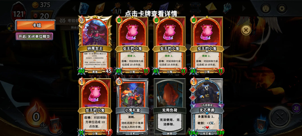 10、纯粹运气。蛇眼就不适合副拳王了,根本放不出来。走菲德副女王,生物有点多但是每轮抓牌多,所以删牌压力还可以,英雄给了buff原鸡,狱魔3费狂怒非常适配蛇眼,留意多去宝物找减费,最终打成了小鬼学者回收双倍狂怒4刀弑神爽局