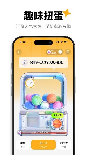 3、要是你想尝试扭蛋玩法,就点击软件页面顶部的“扭蛋”功能入口,进入扭蛋操作界面。