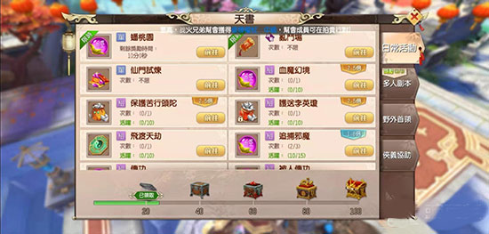 天书任务:天书任务中的蟠桃园、乱斗场、赛跑比赛是平时获得灵力的主要途径,其次为保护苦行头陀。玩家也可以通过高级玩家传功来获得所需的灵力,但是每日传功只能进行一次,传功与被传功系统都会额外奖励灵力以及经验。